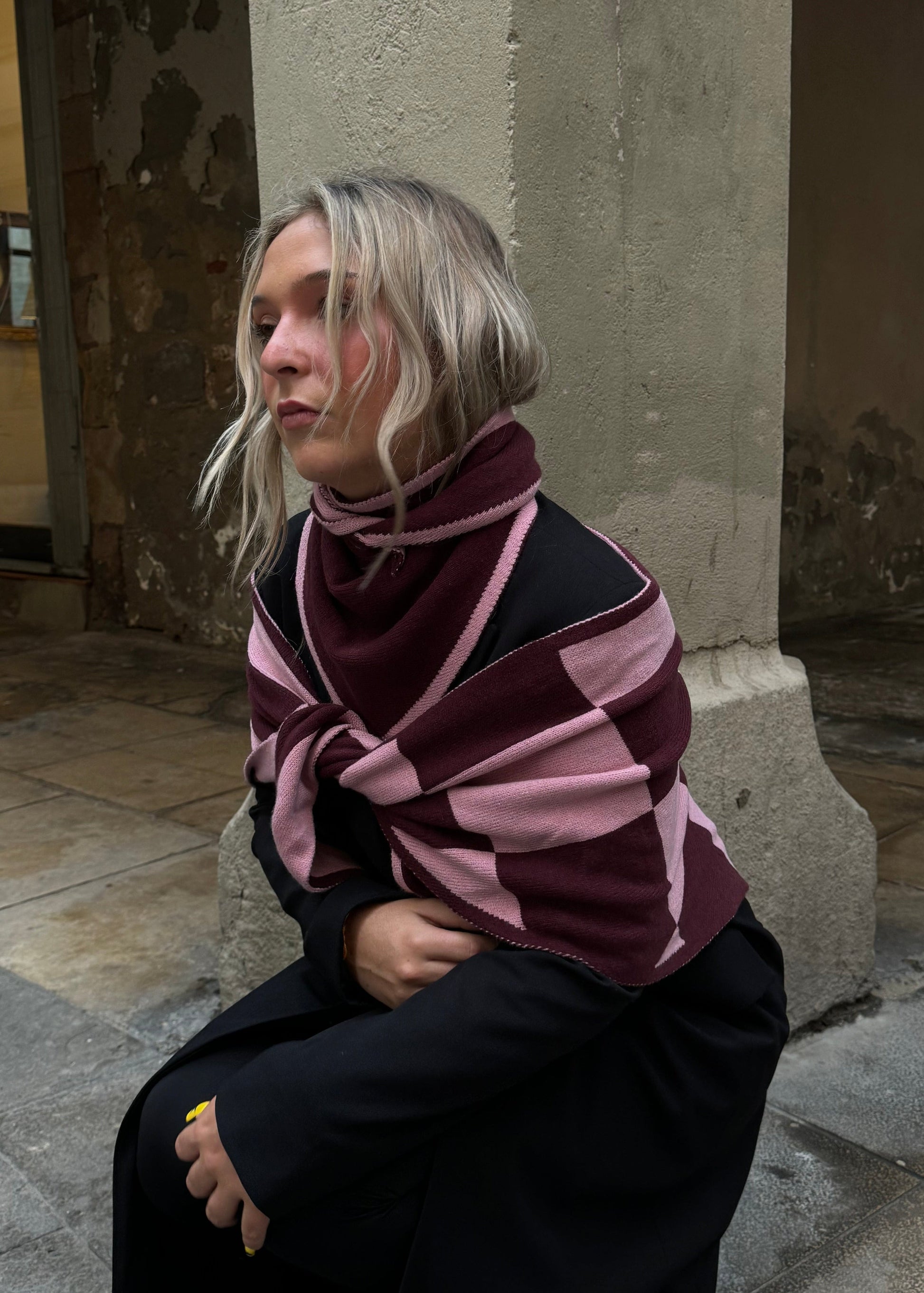TRIANGLE SCARF AW26 / SMALL - PLAIN BURGUNDY W/ PINK